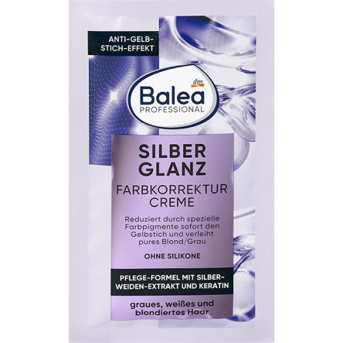 Сріблясто-сяючий та сяючий: корекційний крем для кольору Balea Professional Silver Shine вражає своєю потужною формулою для помітних результатів. Він пропонує негайне зменшення жовтих тонів та забезпечує тривалий, чистий світлий або сивий відтінок. Виготовлено без мікропластику та водорозчинних, чисто синтетичних полімерів.