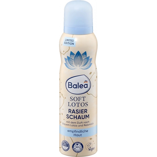 - З піною для гоління Soft Lotos від Balea гоління стає особливо приємним ритуалом догляду. Завдяки насиченій зволожуючій формулі кремова піна заспокоює і захищає шкіру вже під час гоління та допомагає запобігти подразненням, пов'язаним з голінням. Ніжний аромат блакитного лотоса та рисового молока забезпечує розслаблююче ароматичне враження. Завдяки ніжній текстурі піна легко розподіляється і забезпечує шовковисту гладкість шкіри. Особливо чутлива шкіра отримає користь від цього доглядаючого засобу для гоління.