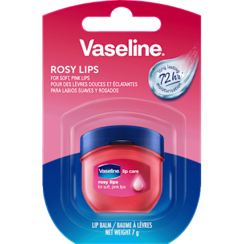 Догляд за губами Rosy Lips від Vaseline забезпечує губам тривале зволоження, надає їм легкий рожевий аромат і ніжний колір. Бальзам для губ зволожує шкіру до 72 годин і, завдяки міні-формату, ідеально поміщається в будь-яку сумочку. Формула не залишає жирних слідів і ідеально підходить для регулярного використання.