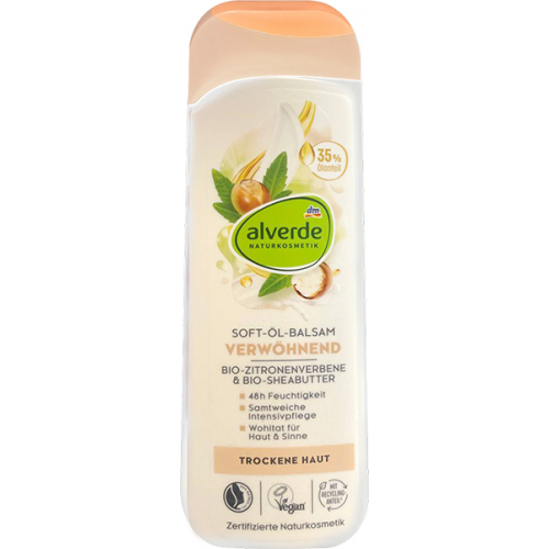 Гель для душу VERWÖHNEND від alverde NATURKOSMETIK м'яко та дбайливо очищає шкіру, даруючи приємне відчуття доглянутості. Упаковка підлягає переробці, а пляшка на 96% складається з переробленого матеріалу (без кришки). Цей гель для душу з морською сіллю та органічною сосною є ідеальним варіантом для щоденного догляду за тілом та забезпечує ніжне очищення.