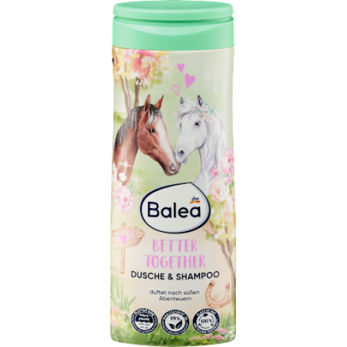 Гель для душу Balea Kids 2в1 Better Together подарує солодкі пригоди під душем. Формула з нейтральним pH забезпечує м'яке очищення та догляд за чутливою шкірою та волоссям дітей.