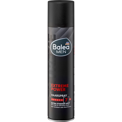 Лак для волосся Balea MEN Extreme Power забезпечує екстра сильну фіксацію і надійну стійкість до 24 годин. Формула забезпечує, що волосся не склеюється і легко розчісується. Ідеально підходить для точних і сильних зачісок, які тримаються весь день.