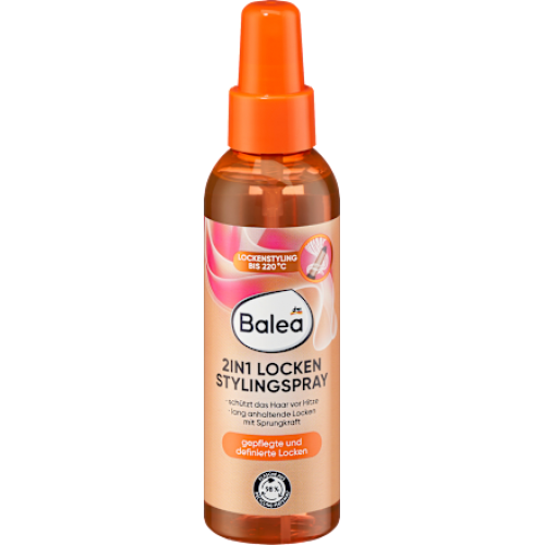 Спрей для укладання кучерів Balea 2в1 ідеально підходить для доглянутих і чітких локонів. Спрей залишає доглянуті та довготривалі локони, одночасно захищаючи волосся від високих температур. Вміщений у складі зміцнюючий кератин забезпечує доглянутий вигляд, а пантенол та бетаїн захищають від пересушування.