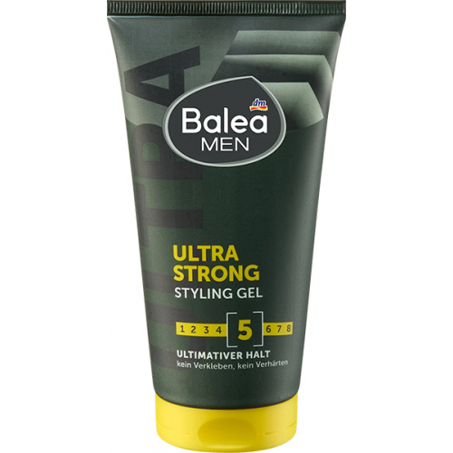 Гель для укладки Balea MEN Ultra Strong забезпечує сильну фіксацію для будь-якого типу волосся, не склеюючи його. Крім того, волосся не пересихає. Після насиченого дня гель легко вичісується і змивається.