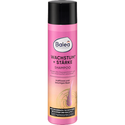 Шампунь Balea Professional Growth + Strength м'яко очищає волосся та надає йому нової пружності та еластичності. Ефективна формула підтримує та стимулює природний ріст волосся і може зменшити випадіння волосся*. Для слабкого та ламкого волосся.