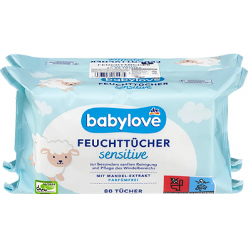 Вологі серветки для чутливої шкіри в подвійній упаковці (2x80 штук) від babylove переконують своїми чисто рослинними миючими речовинами, які забезпечують особливо м'яке очищення. М'які та поглинаючі серветки збагачені м'яким лосьйоном, що містить екстракт мигдалю та забезпечує оптимальне зволоження. Ці властивості допомагають поліпшити стан шкіри та запобігають подразненню. Вони підходять не тільки для м'якого очищення шкіри немовлят, але й ідеально підходять для чутливої шкіри дорослих. Крім того, вони підходять не тільки для очищення попки малюка, але й для очищення рук, обличчя та тіла. Формула з нейтральним для шкіри pH забезпечує приємні відчуття на шкірі.