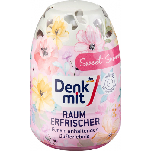 Освіжувач кімнати Sweet Summer від Denkmit створює літню, приємну атмосферу. Його аромат поєднує фруктові нотки з м’якими, кремовими нюансами, привносячи безтурботну легкість літа в будь-яку кімнату. Водночас, дозатор аромату надійно бореться з неприємними запахами та забезпечує тривале відчуття свіжості, яке може тривати до восьми тижнів. Завдяки доданому гіркому агенту Bitrex, він також забезпечує додаткову безпеку в домогосподарствах з дітьми.