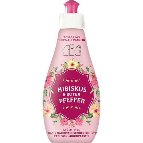 Засіб для миття посуду fit «Гібіскус і червоний перець» — це пікантно-екзотичне поєднання аромату квітів гібіскуса та пекучого червоного перцю. Воно має елегантну дизайнерську пляшку, виготовлену на 100% з переробленого пластику, складається з інгредієнтів на основі поновлюваних сировинних ресурсів і дуже швидко та повністю розкладається в біологічному середовищі.
