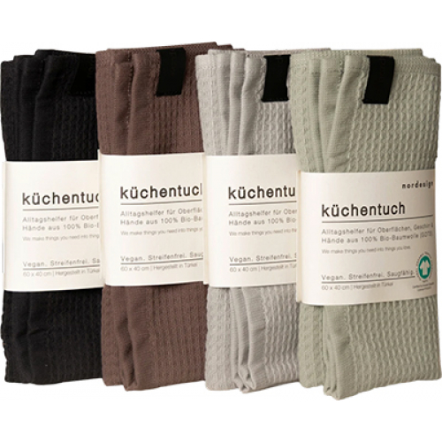 Завдяки продуманому дизайну, кухонний рушник зі 100% органічної бавовни від nordesign чорного кольору стане стильним щоденним помічником на будь-якій кухні. Завдяки двом різноконструйованим поверхням він підходить як для витирання розлитої рідини, так і для витирання посуду та склянок без розводів. Практична петля для підвішування з веганської шкіри та бавовни доповнює дизайн і гарантує, що рушник завжди буде під рукою. Цей товар доступний у різних дизайнах. На жаль, попередньо вибрати конкретний дизайн під час замовлення неможливо.