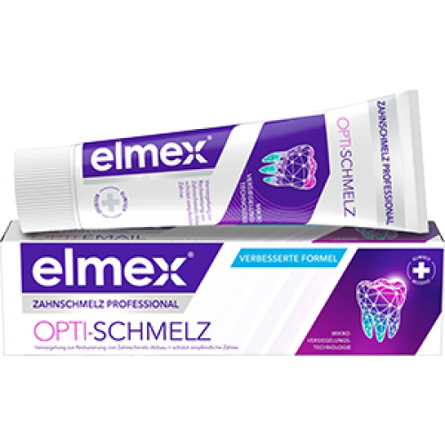 Зубну емаль та чутливі зуби можна захистити за допомогою зубної пасти elmex Professional Opti-enamel. Ця зубна паста може герметизувати емаль і тим самим зменшити втрату мінералів. Формула може ремінералізувати емаль, оскільки мінерали відкладаються в ослаблених ділянках, утворюючи захисний шар від кислотного впливу та чутливих зубів. Завдяки щоденному використанню зуби можуть стати міцнішими та стійкішими.